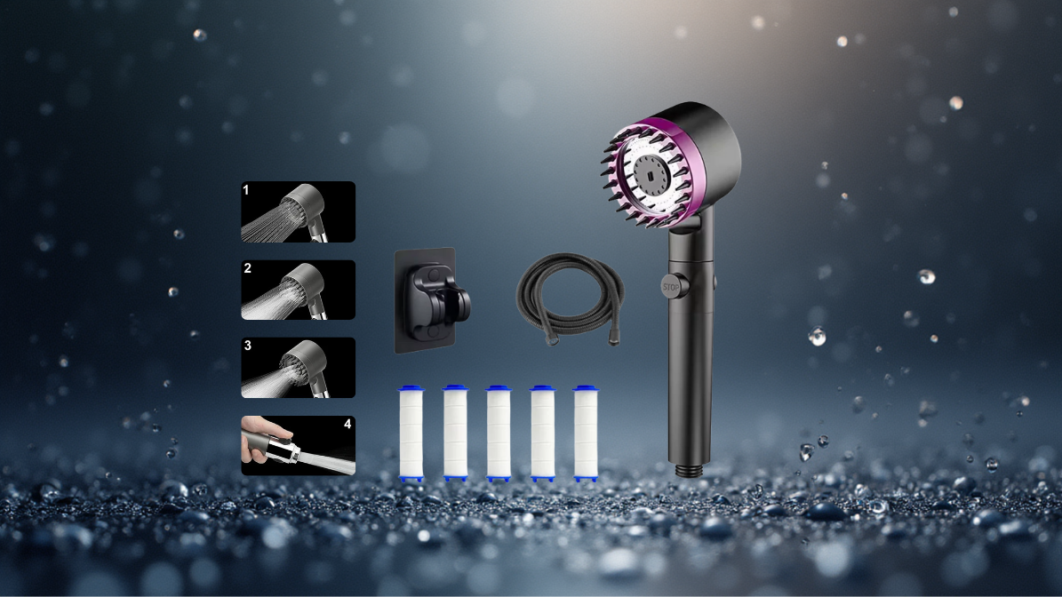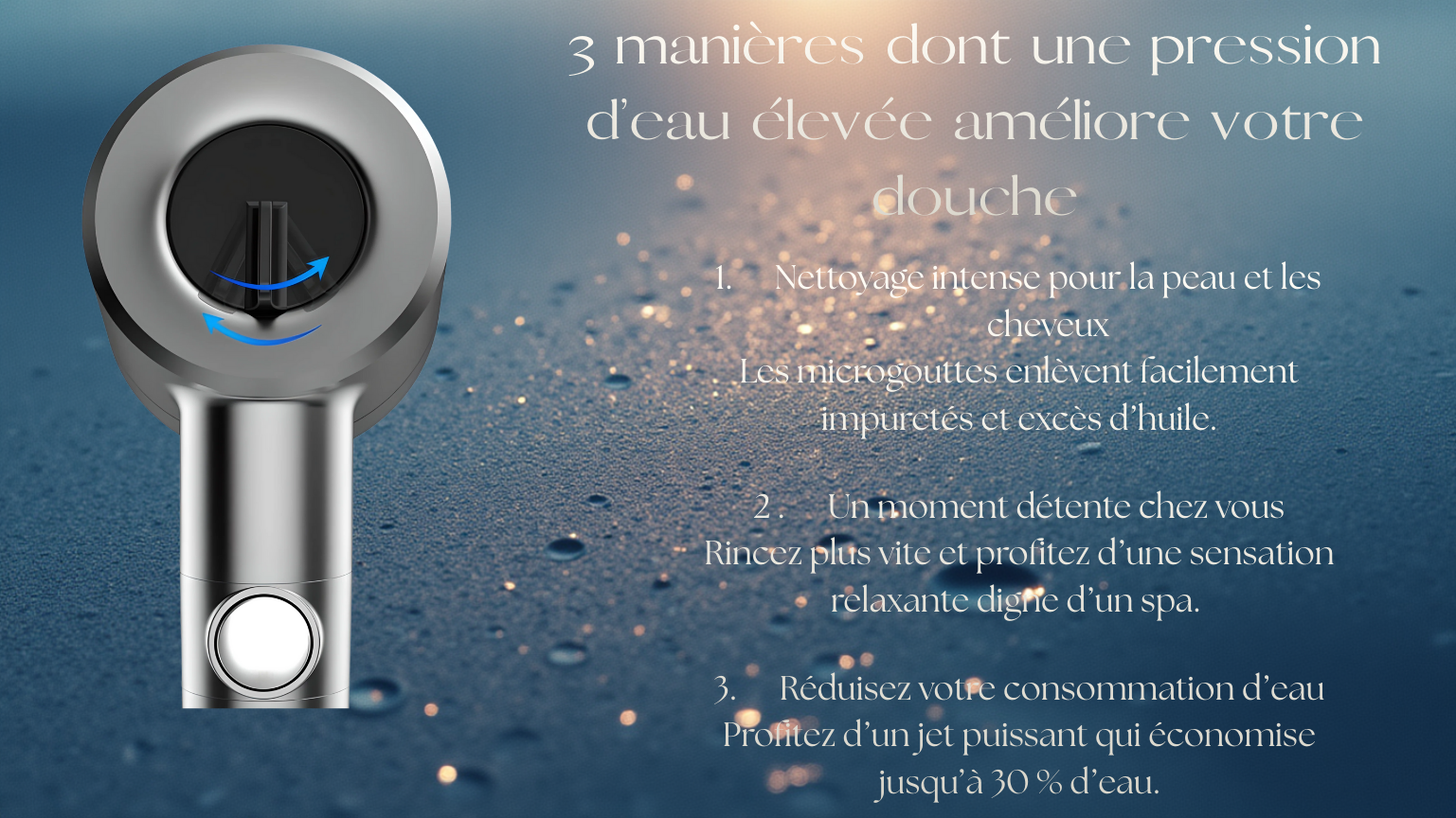 "Pommeau de douche massant, filtres, fixation, flexible de douche"